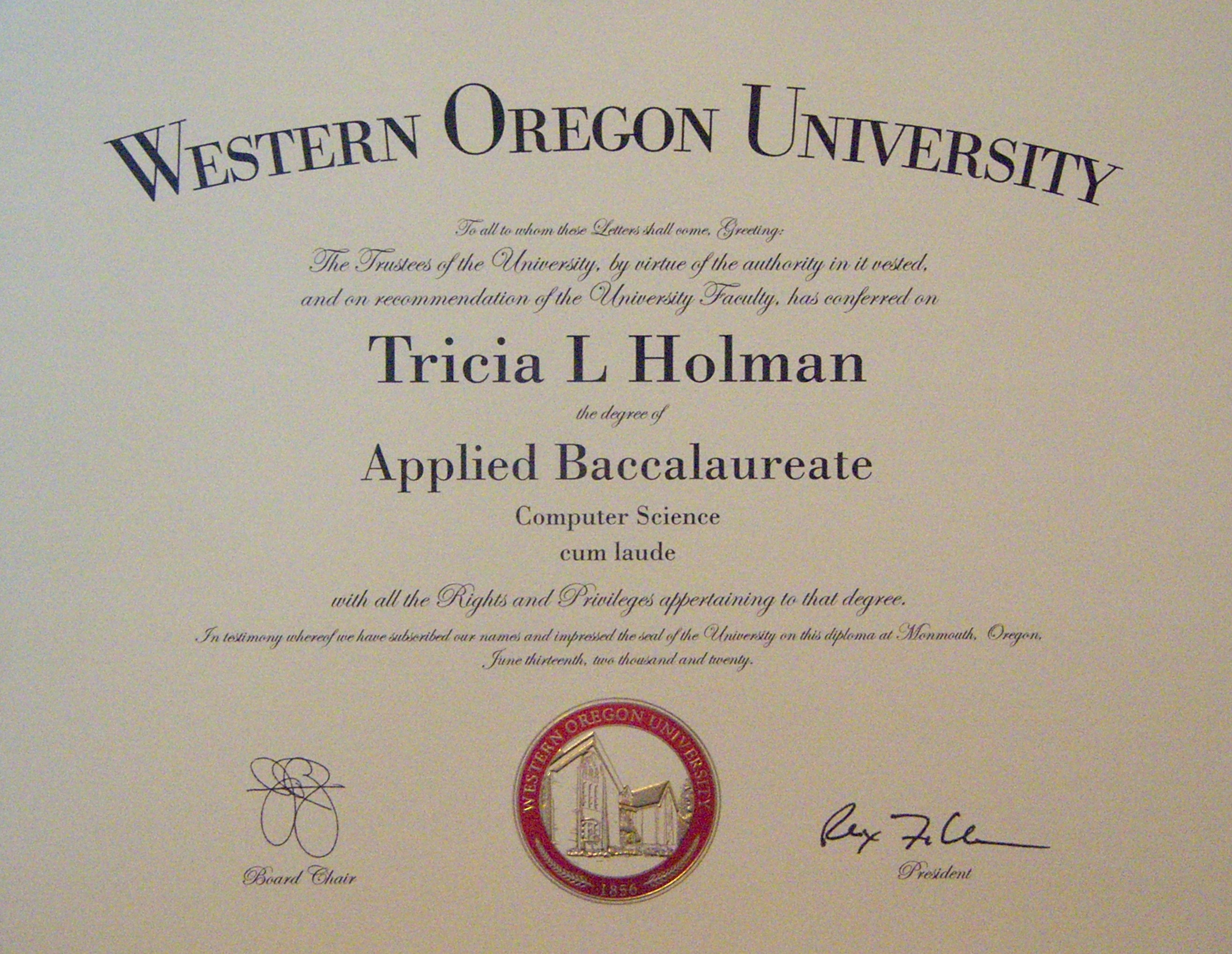 I graduated with an Applied Baccalaureate of Science in Computer Science from Western Oregon University on June 13th, 2020. We spent our entire senior year in Software Engineering I, II, & III; working in assigned teams on a comprehensive software design and development project from inception through construction & delivery, in preparation for joining a professional development team in a meaningful way.