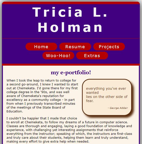This is my second time around with college, but my first at the university level; finally earning a degree in what I should have been doing all along.
